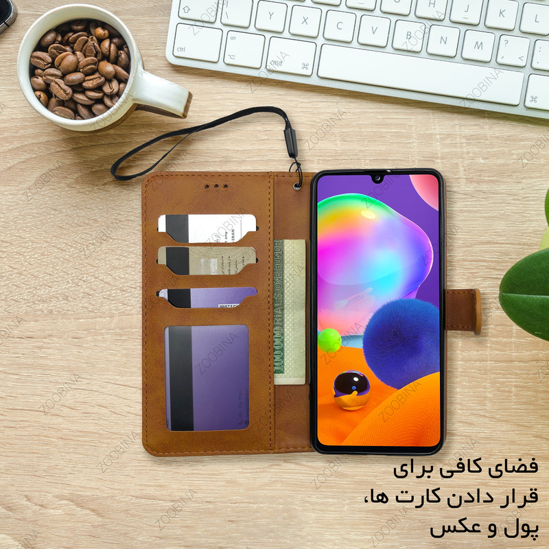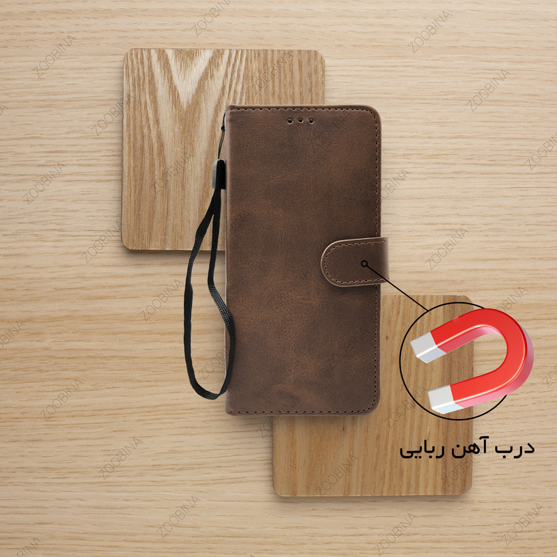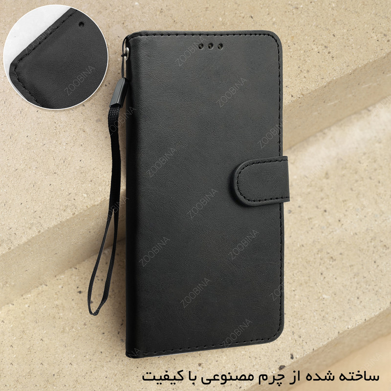 کیف چرمی زوبینا از چرم و TPU باکیفیت ساخته شده است که می توانید برای نگهداری ایمن و زیبای گوشی خود از آن استفاده نمایید. اولین نکته که هنگام باز کردن درب کیف متوجه آن می شویم، وجود بندی با دکمه ی آهن ربایی است که به محکم بسته شدن آن کمک می کند و از محتویات داخل کیف به بهترین شکل مراقبت میکند. این طراحی مدرن در قالبی از جنس و مواد با کیفیت به شما کمک می کند تا تمام لوازم ضروری خود مانند گوشی، پول نقد و کارت های اعتباری خود را در کیف چرمی بسیار خوش دست و زیبا در اختیار داشته باشید. دورتادور این قاب منعطف بوده و گوشی به راحتی داخل قابی که روی کیف وجود دارد قرار میگرد. این قاب به طور کامل بدنه ی گوشی را می پوشاند البته محل پورتها و دوربین به دقت برش خورده است و حتی برای شارژ نیازی به بیرون آوردن گوشی از کاور وجود ندارد. همچنین در قسمت کناری کیف، بند مچی ای تعبیه شده باعث جلوگیری از سقوط ناگهانی گوشی و یا سرقت آن می شود. یکی دیگر از امکانات این کیف قابلیت استند شدن آن است که میتوانید در این صورت توسط کیف، گوشی را روی سطح صاف مانند میز قرار داده وبه تماشای موزیک ویدئو یا فیلم بپردازید.