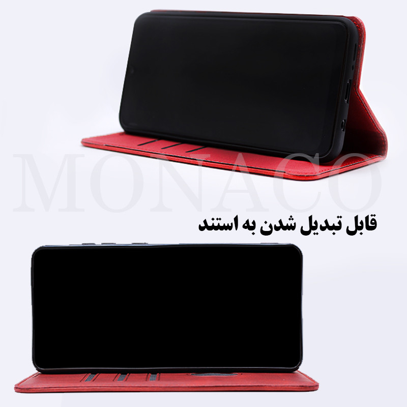 کیف کلاسوری موناکو یکی از بهترین محافظ ها برای گوشی است که از چرم مرغوب و باکیفیتی ساخته شده است. این کیف با پوشش کامل پشت، نمایشگر و دور تا دور گوشی به خوبی از آن در برابر آسیب هایی مانند خراشیدگی، ضربات احتمالی، شوک و گرد و غبار محافظت می کند. قاب داخلی کیف، جنسی نرم و منعطف دارد که باعث می شود تا گوشی به راحتی درون آن قرار بگیرد. این قاب تمام بدنه گوشی، اعم از گوشه ها و لبه های رویی نمایشگر و دورتادور آن رامی پوشاند. در نهایت لایه چرمی یکدستی پشت قاب و روی نمایشگر را پوشش می دهد. ارتفاع میان قاب و لنز دوربین پشت گوشی باعث می شود تا هنگامی که گوشی را روی میز یا سطوح صاف قرار می دهید، لنز آن دچار خراشیدگی نشود. محل پورت ها و دوربین به دقت روی کاور برش خورده اند و محدودیتی هنگام شارژ یا اتصال کابل هندزفری نخواهید داشت. روی دکمه ها نیز توسط قاب ژله ای داخلی پوشانده شده است که این ویژگی باعث عدم آلودگی آن ها می شود. داخل درب کیف، یک جیب وجود دارد که می توان از آن برای نگهداری کارت اعتباری استفاده نمود. در صورت دلخواه می توانید با استفاده از درب کیف، گوشی را به گونه ای روی میز قرار دهید که بتوانید به راحتی به تماشای فیلم و یا موزیک ویدئو بپردازید.